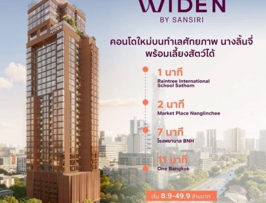 คอนโดใหม่ WIDEN by Sansiri บนทำเล นางลิ้นจี่ สงบ เรียบหรู และเลี้ยงสัตว์ได้จริง โทร 061-6161426